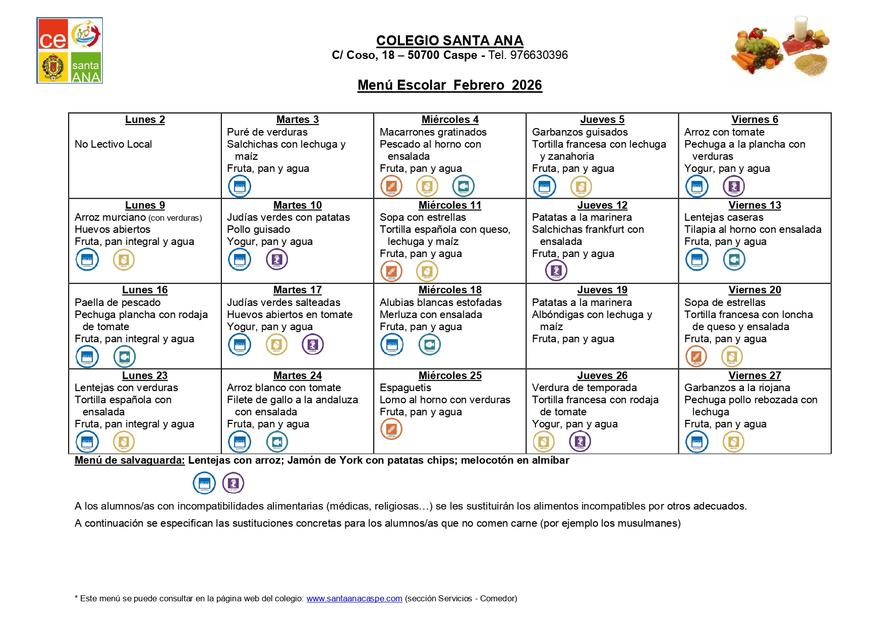 A los alumnos/as con incompatibilidades alimentarias (médicas, religiosas…) se les sustituirán los alimentos incompatibles por otros adecuados.